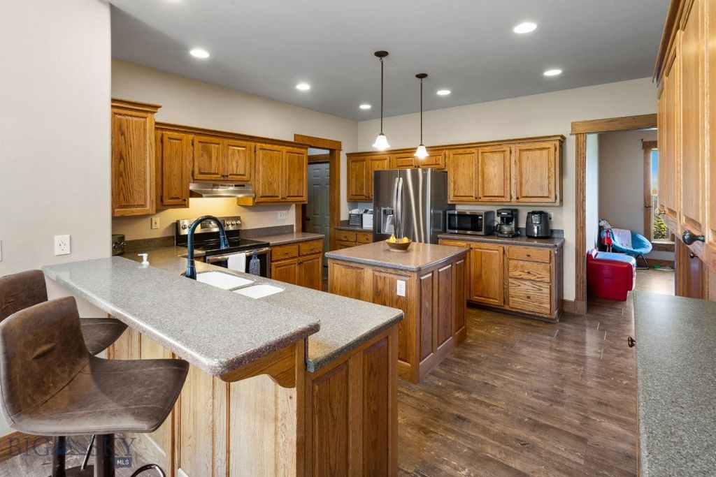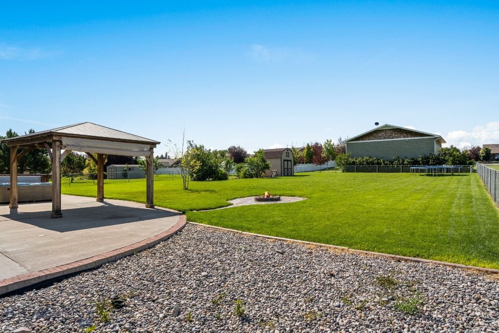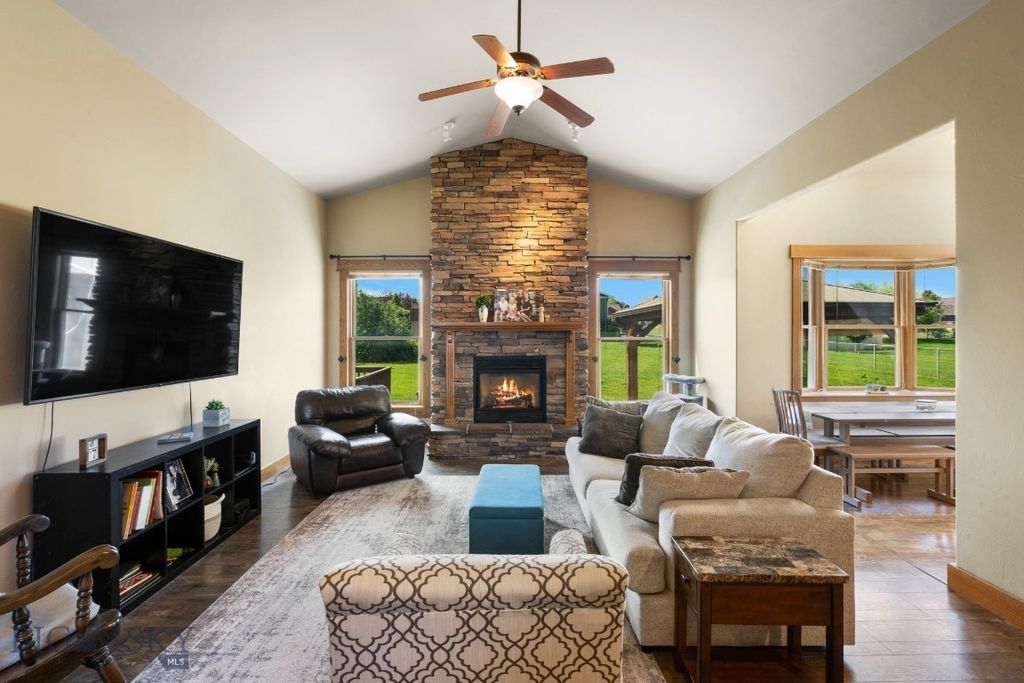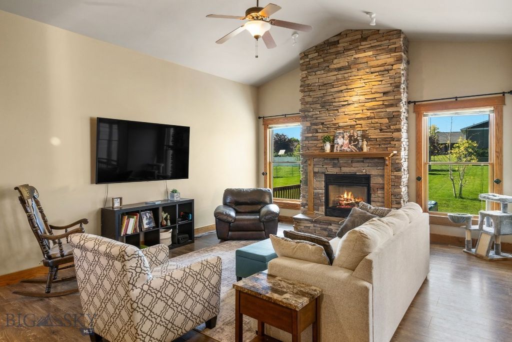This home is open, spacious and truly a beauty. Located in Churchill North Subdivision, this home boasts 4BD, 2.5BA + office space, THEATER ROOM, oversized 2-car garage while sitting on a generous half acre lot. This home offers RV parking ability. This property was LOVED by its previous owners and shows upon entry into the home. Floorplan excels beyond the rest with its functional layout, soaring ceilings, main-level master suite, open floor plan, newer window coverings and newer furnace with air conditioning. The backyard leaves plenty of space left to enjoy your own oasis including a patio, gazebo, hot tub, firepit, underground sprinklers and garden beds. Solid wood doors, wood trim and a stacked stone fireplace truly give this home a classic Montana feel. Close to town but far enough way to still feel like country living. This property is also within the Manhattan School District. Enjoy your peace and serenity with incredible sunsets and unwind from a long day while you stargaze in your hot tub and enjoy the quietness of the countryside!
